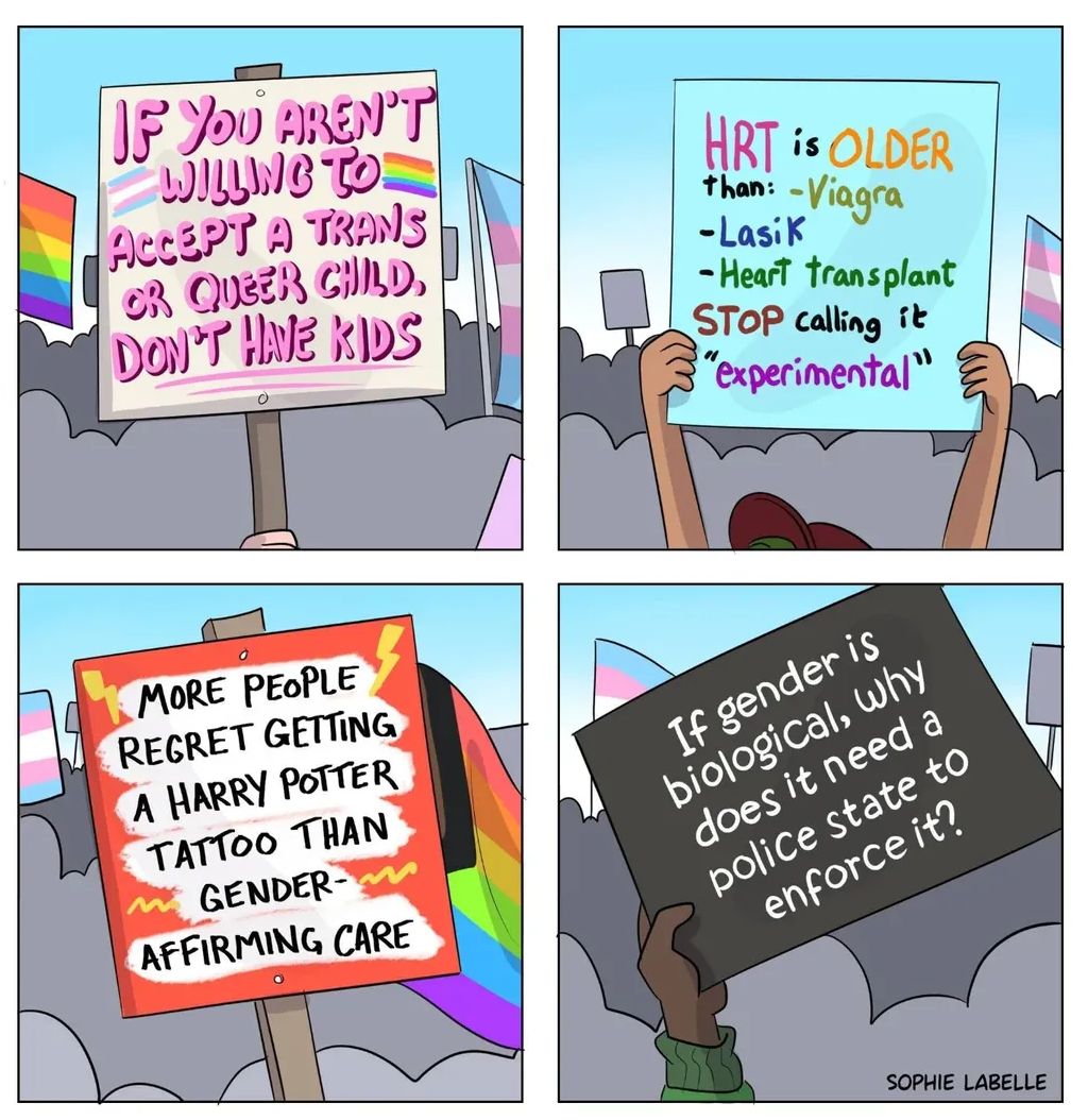 Transphobes, take note! Credit: @labellesophie #lgbtqia #lesbian #gay #bisexual #transgender #queer #intersex #asexual #agender #nonbinary #genderqueer #activism #protest #protestsign #pride #prideisaprotest