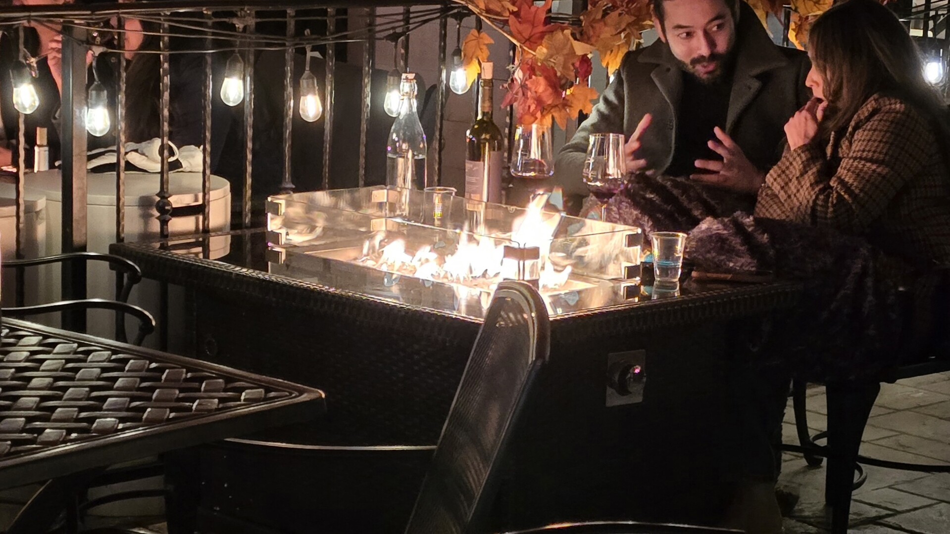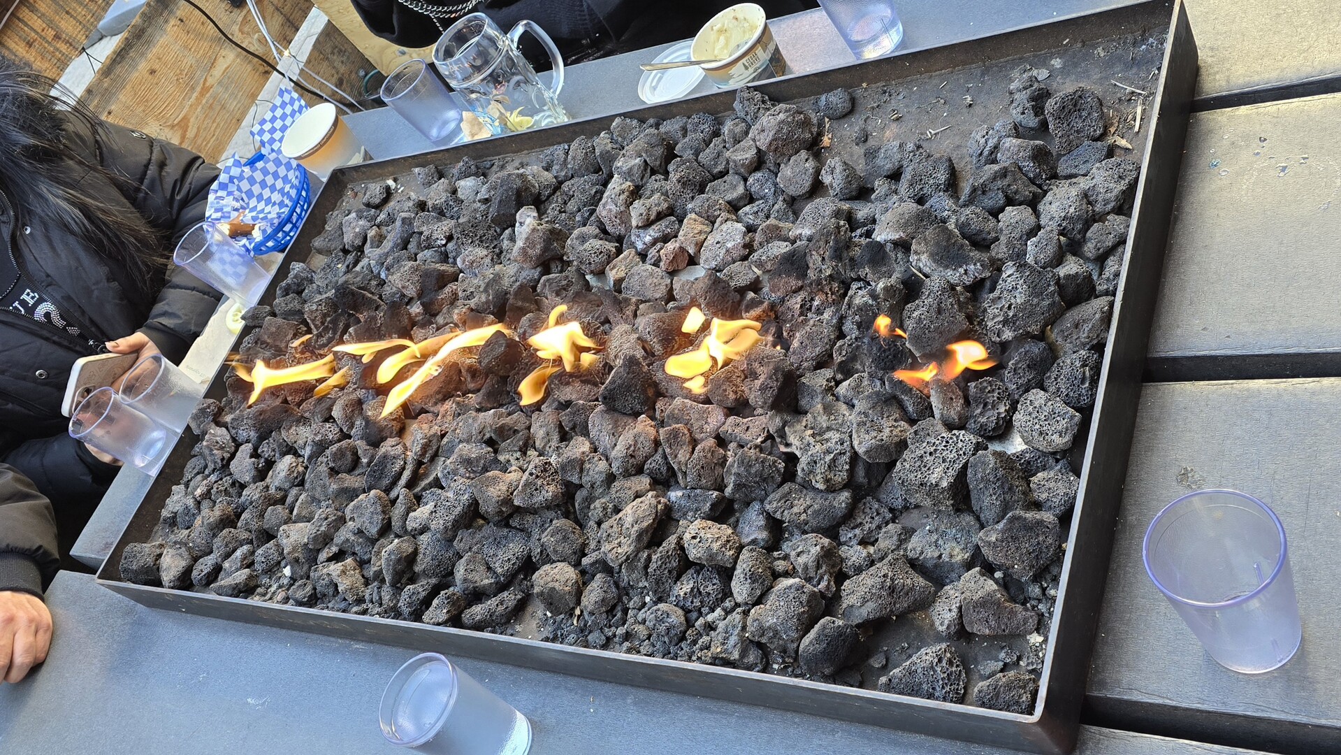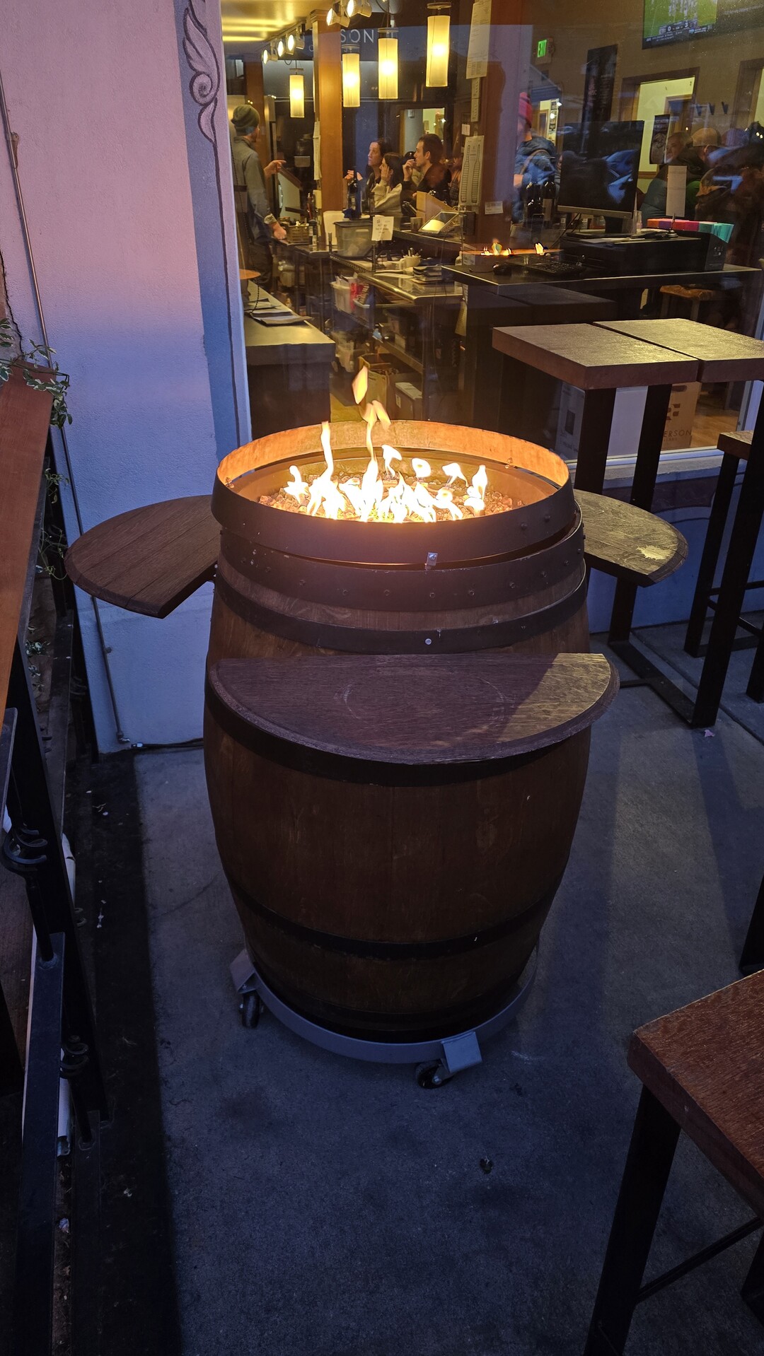 I absolutely love these "table top fire" warmers at the restaurants out here. But if I sat at one of those tables, I would be in flames in about four minutes.